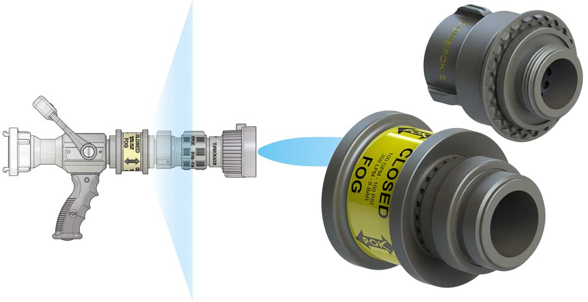 Ces accessoires, se fixant sur une lance à incendie, sont disponibles avec différents ajutages de sortie afin de s’adapter à une large gamme de produits.